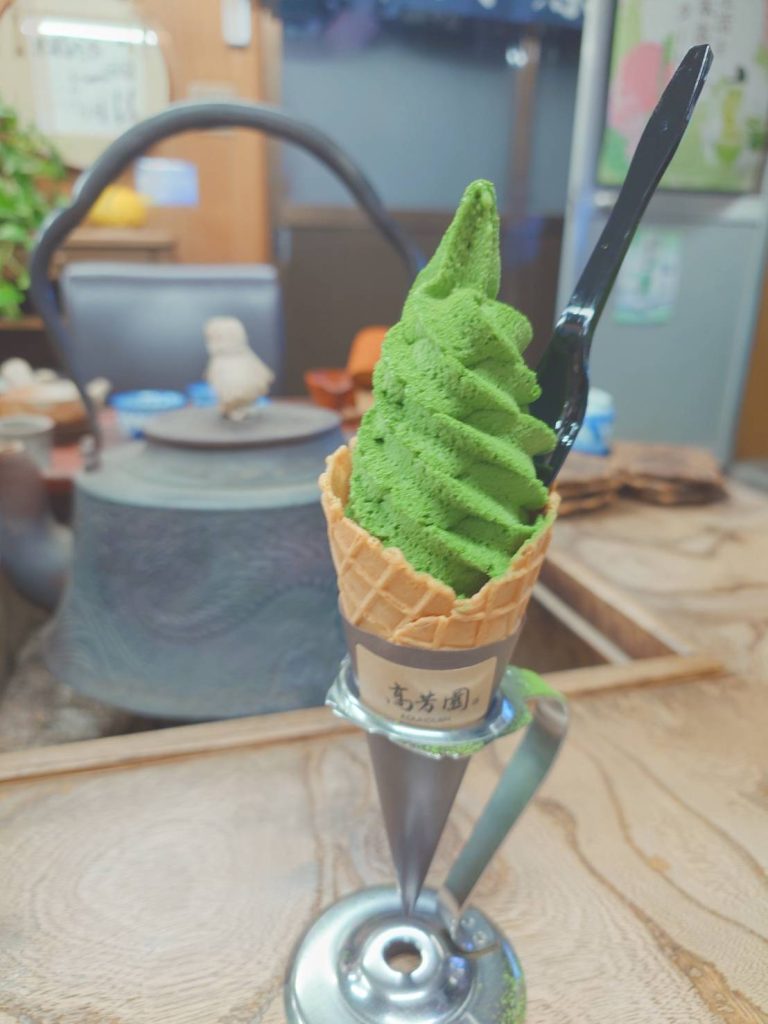 また、抹茶ソフトクリームもいただいたのですが、こちらは驚くほど濃厚で、甘さの中にもしっかりと抹茶の風味が前面に出た味わい。抹茶好きの方にはぜひ一度味わっていただきたい一品です。