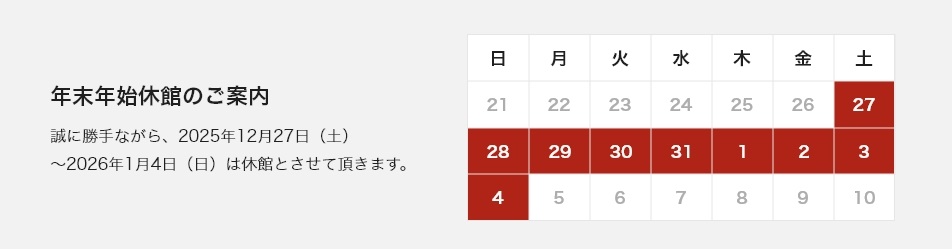 パナソニック ショウルームの年末年始の休館のご案内が届いております。